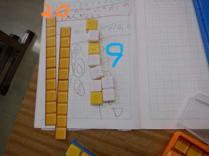 47−18の答えは29のようです。このあと、みんなでこれを確かめます。