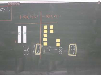 十の位の計算は、繰り下がった30から「17」の10をひくので、3−1=2(30−10=20)となります。