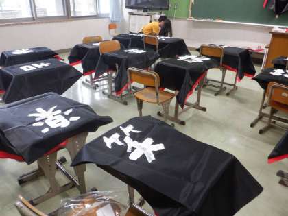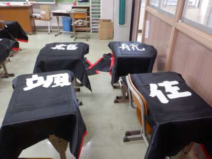 黒い布にくっきりと白い一文字がいいですね。