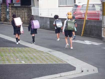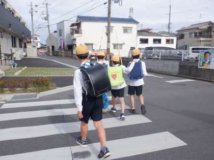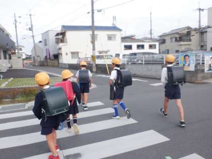 今朝の登校の様子です。昨日の朝に比べて気温が高く、日が差すと暑く感じます。