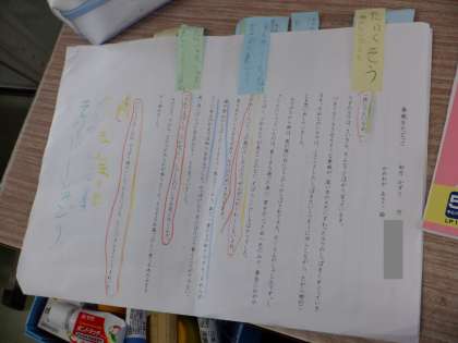 どこをどんなふうに読むのか、それはなぜなのかを、付箋や色鉛筆などで表しています。