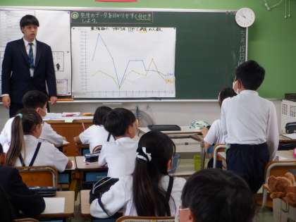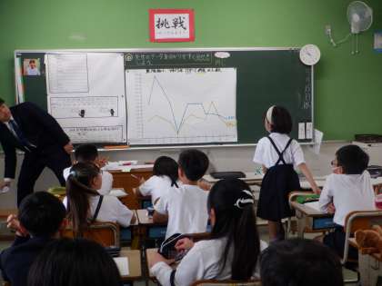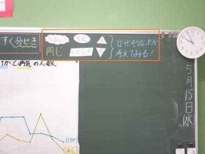 折れ線グラフをどう見ればよいのか、これまでに学んだことを出し合いました。