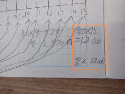 長さと値段が比例していることから、1mの値段80円の15倍として考えています。