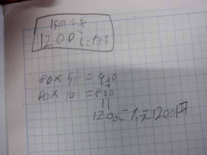 同じ考えですが、計算しやすくするために、5mの値段と10mの値段をたしています。「5mの値段の3倍になる」ことにも気づいていました。