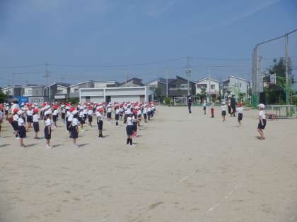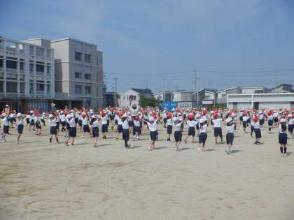 体育参観と同じように、1・2年合同で競技、演技などの練習をしました。堺っ子体操をしているところです。