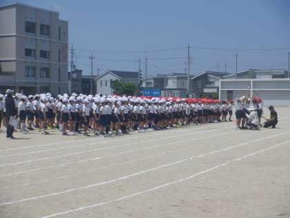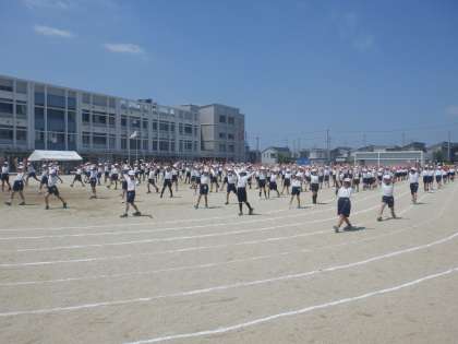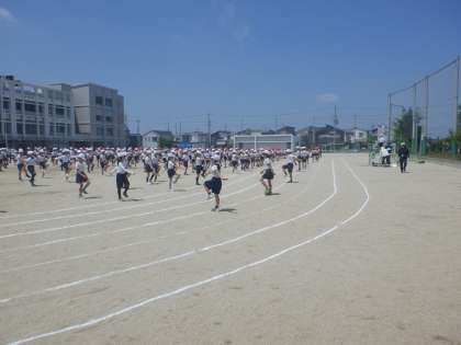 3・4年の合同練習の様子です。代表の人たちの選手宣誓の後、堺っ子体操から開始です。