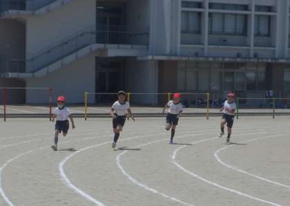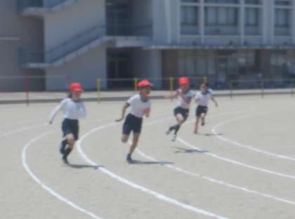 3・4年の徒競走は80m走です。3年が走っているところです。