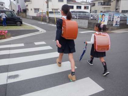 今朝の登校の様子です。曇っていますが、風もなく穏やかな朝です。