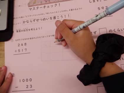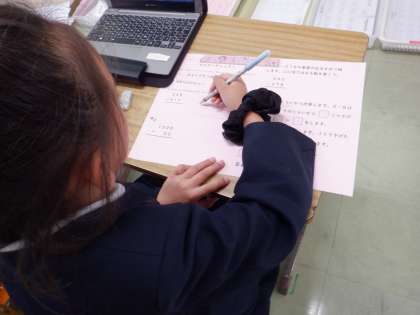 次は、この時間にめあてとしていたことが本当にできているか、別の問題を解いて試します。