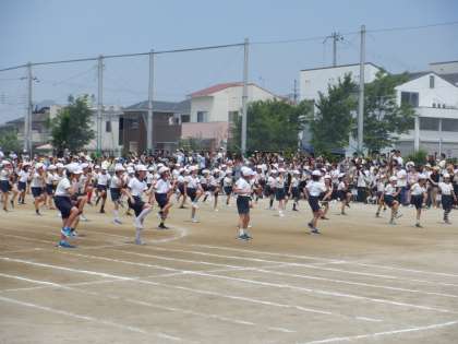 3・4年の体育参観の様子です。実行委員の開会の言葉から堺っ子体操へと続きます。