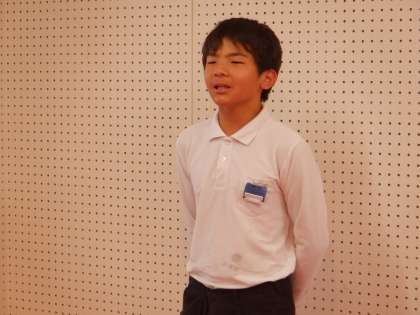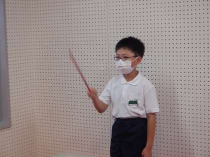 テレビ朝礼の様子です。児童会の人たちの進行で、校歌からスタートします。