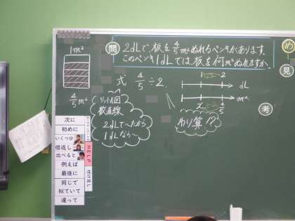 6年算数の学習です。分数÷整数の計算の仕方を考えています。
