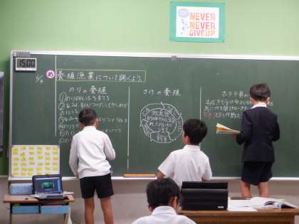 5年社会の学習です。食料生産の中の水産業の学習にで、養殖について調べています。