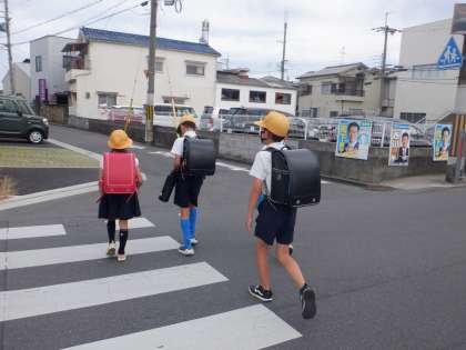今朝の登校の様子です。薄曇りで少し風もありますが、今日も暑くなりそうです。