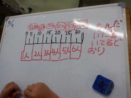 同じように、5cmずつ区切って6人分を見つけました。5×□=30と考えて、□の6を見つけています。