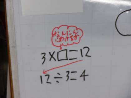 求めたい数を□で表してかけ算の式を立て、そこからわり算の式を導きました。