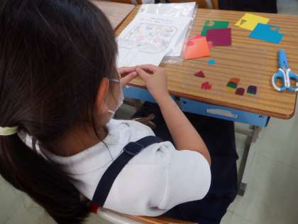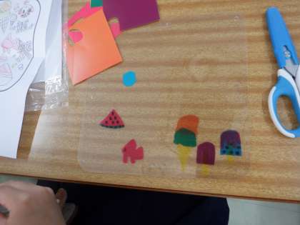 金魚すくいの金魚でしょうか。夏の楽しみがいっぱい表されています。