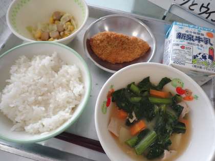 今日は、大豆の栄養がたっぷりとれる呉汁と子どもたちの大好きなあじフライでした。