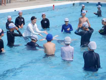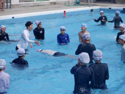 いろいろな浮き方の復習です。お手本を見ているところです。