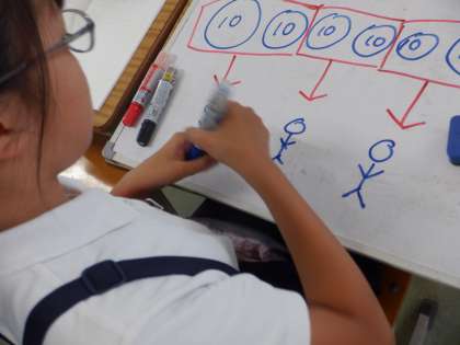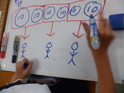 10のまとまりを使って60本を表し、それを3人に分けるという図を多くの人がかいていました。