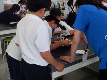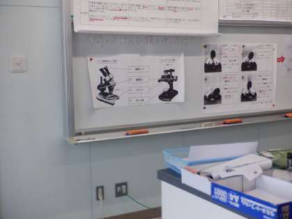 5年理科の学習です。「双眼実体顕微鏡」の使い方を学んでいます。見ているのは花粉だそうです。