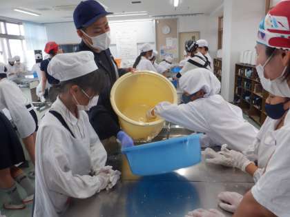 みそ玉を大きなたるに仕込んで、作業は完了です。どんな味噌ができるのか、楽しみです。