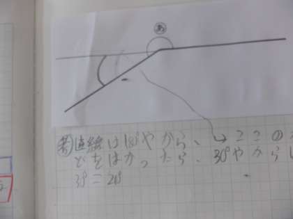 見通しが立ったところで各自の問題解決です。180度にそれより大きい分をたす考え方です。