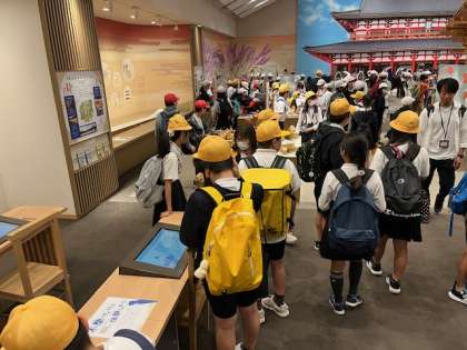 なので、平城京奥の大極殿まで行くプランは変更し、歴史資料のあるいざない館の見学と朱雀門周辺の散策に変更してグループで見学しました。
