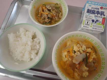 今日の給食は、蒸し暑い季節にピッタリのサンラータンでした。