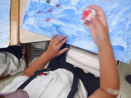 きれいな赤色を出すために、スタンプの押し方も工夫しています。