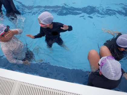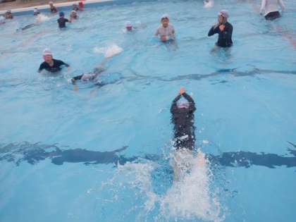 仲間のアドバイスを生かしてうまく息継ぎができたでしょうか。