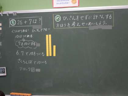 2年算数の学習です。26+7をひっ算をしないで簡単に計算できる方法を考えています。