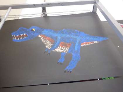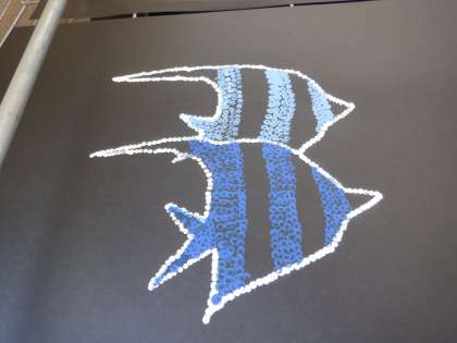 5年図工の作品を見せてもらいました。表したいものを点を使って表現しています。