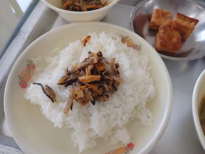 今日の給食は、海のミネラルをたっぷり含んだひじきを使った「セルフひじきごはん」でした。ひじきは、栄養も豊富で健康によい食品として日本で古くから親しまれてきた海藻です。ひじきには食物繊維・カルシウム・鉄分などが多く含まれています。子どもたちの成長や健康にも欠かせない栄養素ですね。