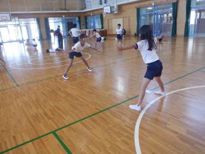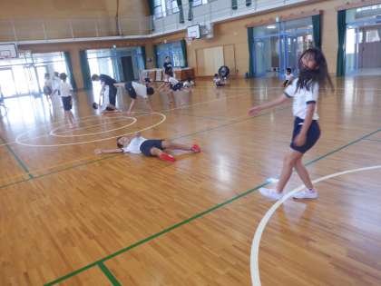 床に寝転んでいるのも「パー」です。立っている人が勝ったようです。
