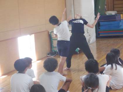 次は、ボクシングを題材にして、「対応した動き」をやってみました。パンチを出す人と、それを避けようとする人の動きが対応するように表します。