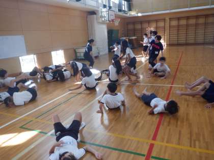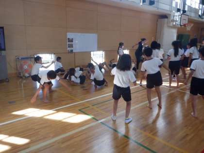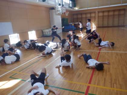 この「対応した動き」を、群をつくって、タイミングをずらしながらやってみると、見た目にもおもしろく、迫力が出てきます。