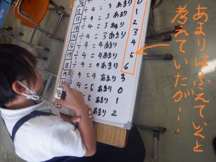 この人も、はじめはあまりは1ずつ増えていくと考えていたようですが、計算していくと、そうではないことに気づきました。