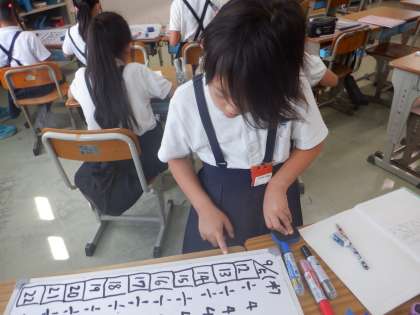 次に、あまりはなぜ0,1,2,3と増えた後にまた0に戻るのか という疑問を持ち、さらに考えています。この間の学習は、全てこの人の中に生まれた問いによって進んでいました。本校がめざす「自立した学習者」が育ってきています。