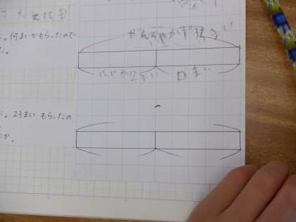 問題に出てくる数量の関係を図に表しました。しっかり学習に取り組んでいます。