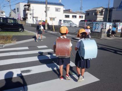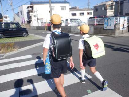 今朝の登校の様子です。風がなく日差しも強いのでとても暑い朝です。
