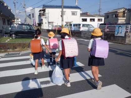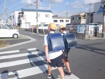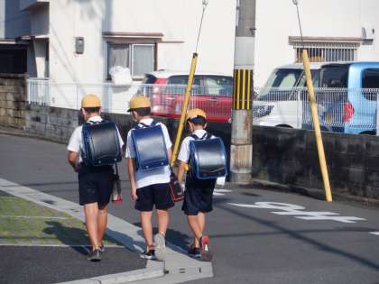 今朝の登校の様子です。昨日の雨で少しは涼しくなるかと思いましたが、相変わらずの暑い朝です。