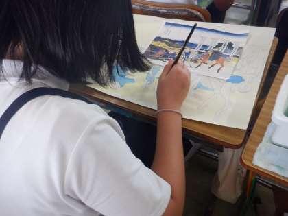 6年図工の学習です。浮世絵の模写がしだいにできあがってきました。