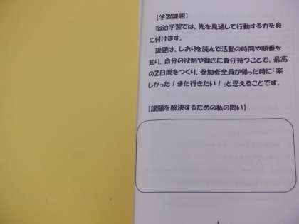 宿泊学習のしおりにも、学習課題が書かれていて、そこから「私の問い」をもつことができるようにしています。