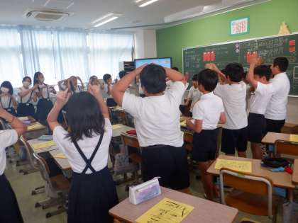 教室では、キャンプファイヤーの出し物の練習をしていました。