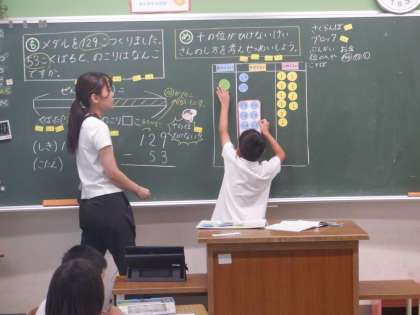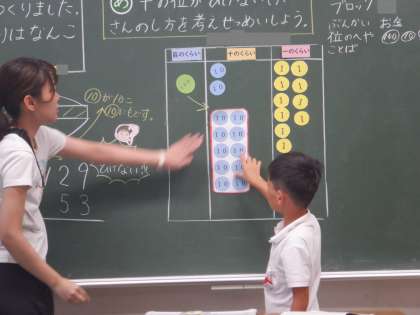 十の位の計算ができるように、100を「両替」して、10を10こ作りました。これで、10が12個あることになりました。