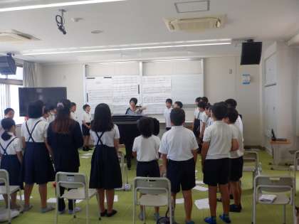 音楽室からいい声が聞こえてくると思ったら・・5年生が合唱の練習をしていました。