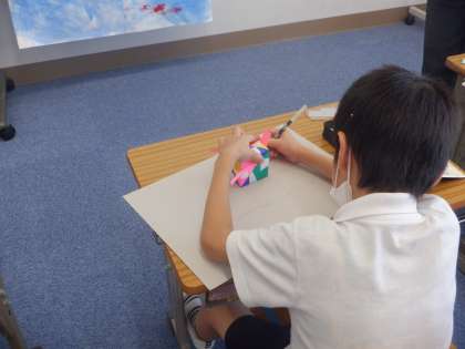 厚紙に面の形を写し取りました。この形には6つの面があることがわかりました。