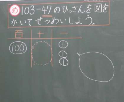 別のクラスでも、問題の数は違いますが、十の位が0の数からひくひき算を学習していました。