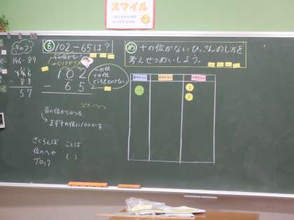 こちらのクラスでも、お金の図(位取り表の図)などを使って、計算の仕方を考えています。